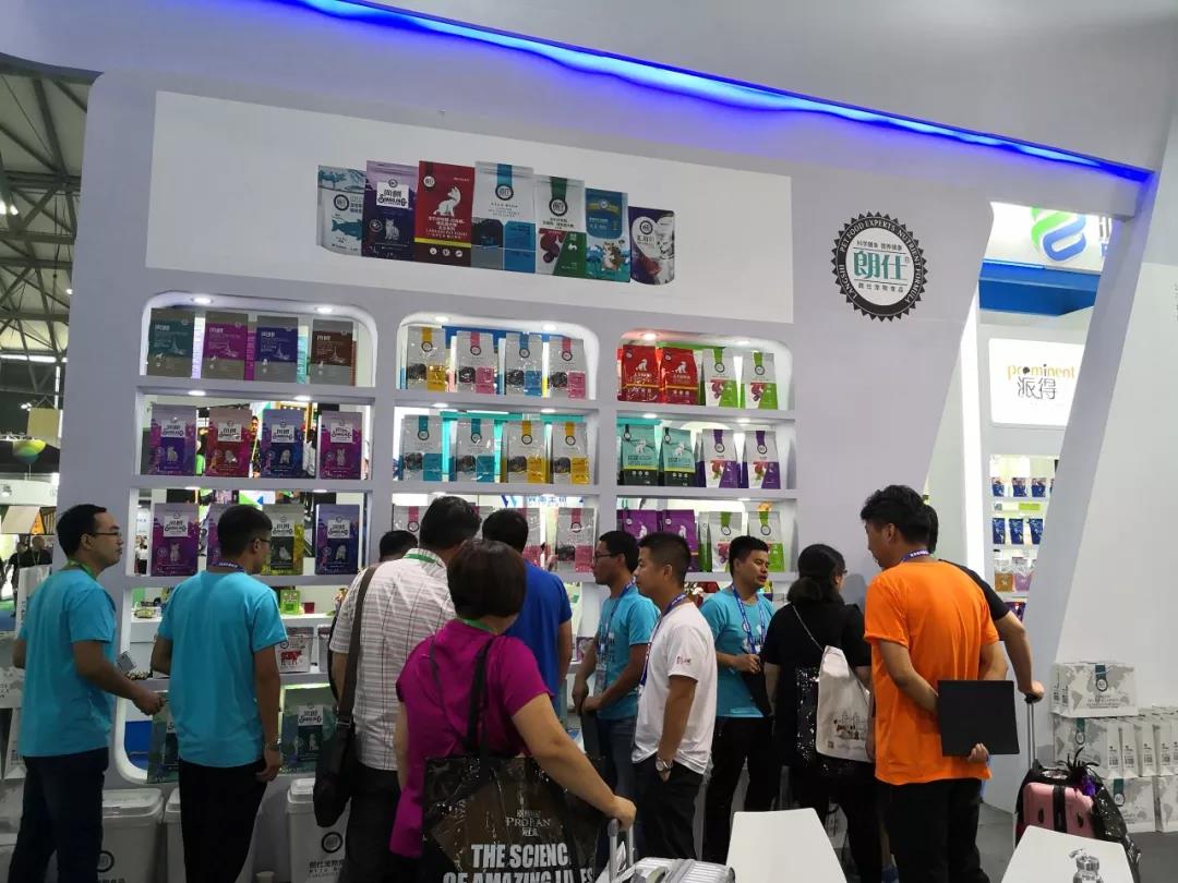 華興寵物食品有限公司的展位N1H51前,迎接著一批批來自全球各地的客戶,熱鬧非凡。