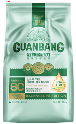 添加劑組成 :果寡糖(0.2%)、低聚殼聚糖(0.01%)、牛磺酸(0.1%)、硫酸軟骨素(0.1%)、維生素A、維生素D3、維生素E、酵母硒、硫酸鋅、氯化膽堿、氨基酸鋅絡(luò)合物、氨基酸鐵絡(luò)合物、山梨酸鉀、抗氧化劑、硫酸錳、硫酸銅、氯化鈉。